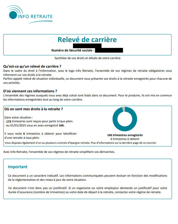Le relevé de carrière, aussi appelé relevé individuel de situation (RIS), est un document administratif qui retrace l’ensemble des droits à la retraite acquis au cours de la carrière, auprès des différents régimes.Des erreurs peuvent apparaître : trimestres manquants, revenus incomplets, périodes mal rattachées ou incohérences entre régimes.Ces anomalies sont fréquentes et impactent directement les droits à la retraite.