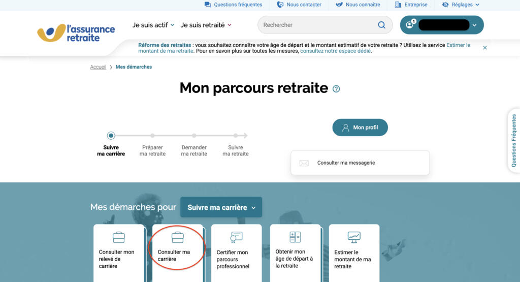 Étape 2 : cliquez sur « Consulter ma carrière »